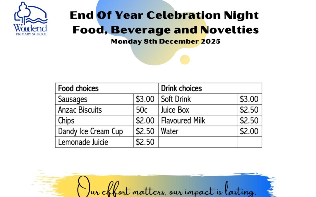 End of Year Celebration Night Menu 2024