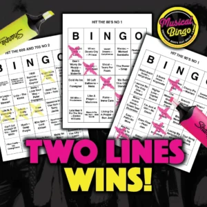 You have 45 seconds to work out the title and performer of the song and mark it off your bingo card…. Don’t worry, you can even cheat and SHAZAM it!