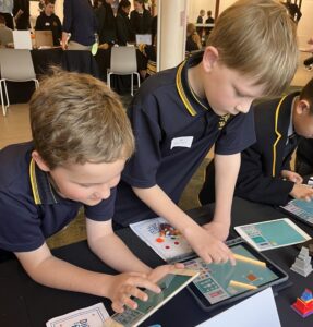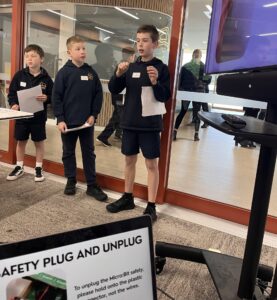 Charlie, Luca and Lincoln ran a hands-on workshop, teaching participants how to code a Micro:Bit to send radio messages in a fun “Spy Mission” challenge. Whilst James and Peter introduced their audience to the world of Artificial Intelligence, sparking conversations about both its exciting potential and the challenges we need to be mindful of. They then guided students through building their own Quick Draw app using machine learning.