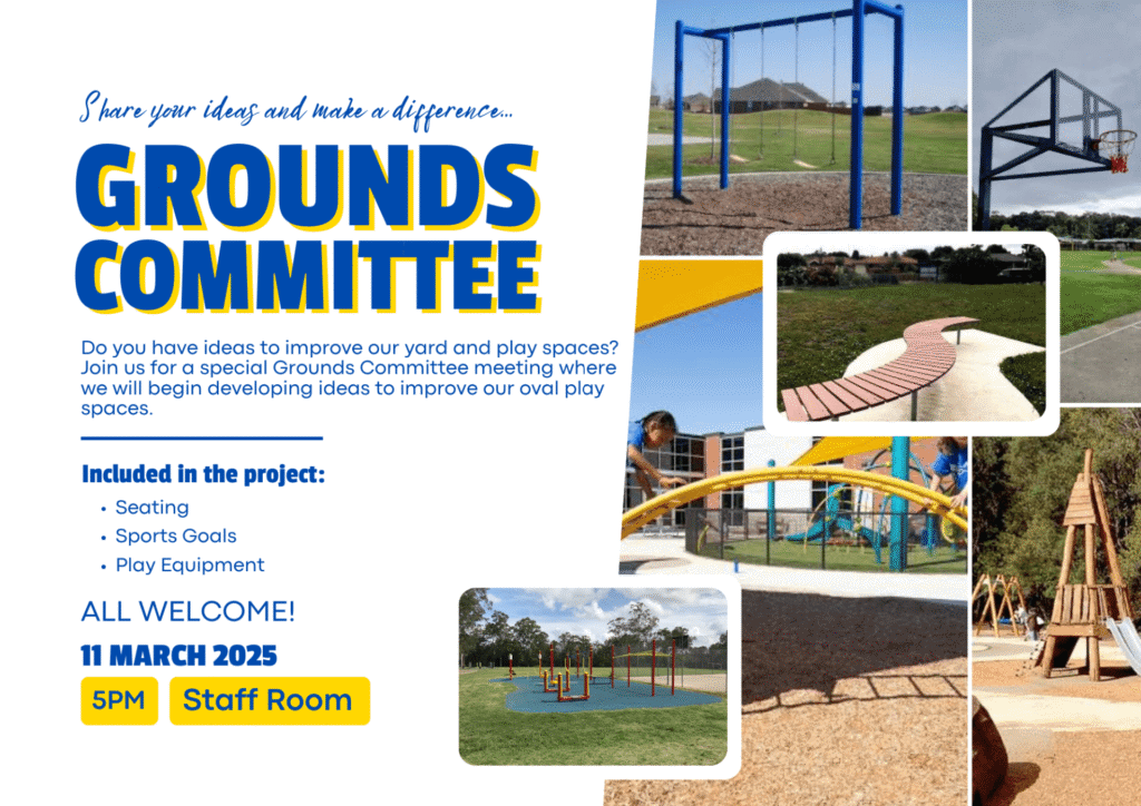 We invite you to join us for our next Grounds Committee meeting, where we will explore ideas for enhancing our oval play area. This is a fantastic opportunity to help shape this community space and create fun, engaging, and welcoming areas for our young people and...