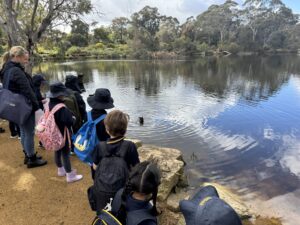 On Thursday September 4th, Reception students visited Wittunga Botanical Gardens. In our STEAM learning we have been investigating pollination, pollinating insects, animals and plants. The Wittunga Botanical Gardens provided the perfect outdoor learning environment to discover the amazing range of flowers, gardens and habitats for these pollinators. Throughout the day we engaged in different learning experiences. We explored the butterfly gardens, looking closely at the interesting plants and flowers and how the insects interacted with them. We watched closely as bees landed on the flowers, sucked up the pollen and then flew off to a different flower. We followed the walking track around the pond, where we saw a billabong, beautiful, grassed areas and more interesting flowers. We were lucky to see dragonflies, bees, butterflies and birds. We created a map of our walk and had to include the different paths that we took and what we saw. We then spent time at the pond where there were different ducks, birds and turtles who came right up to see us. It was peaceful and beautiful watching the animals in their habitat and we sat on the rocks and drew pictures of the animals that we could see. After all our learning we enjoyed the interesting and fun playground and ate our lunch together on the grass.
