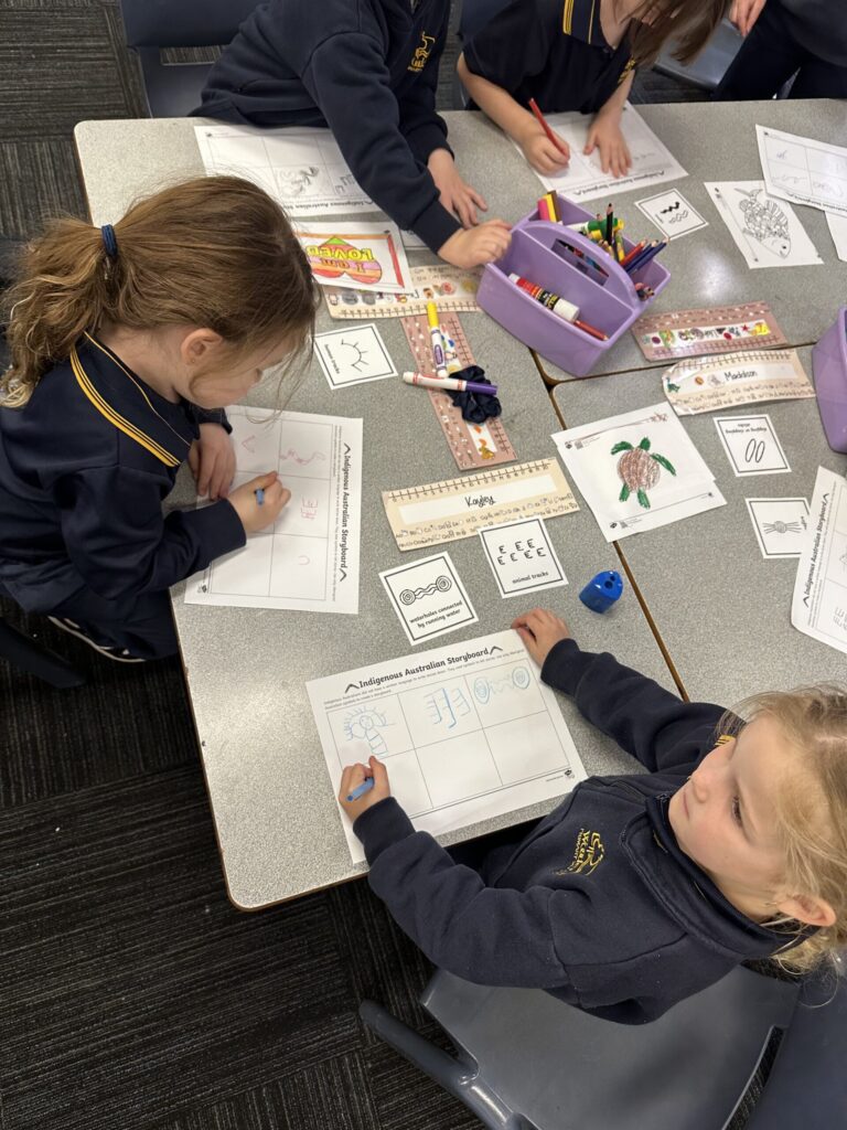 Reception students in Room 23 investigated traditional Aboriginal symbols and used them to tell their own stories. In Room 7, Year 3 students researched Aboriginal iconography and created powerful “Hands of Reconciliation,” which will be proudly displayed in their classroom. These activities fostered a deeper appreciation of cultural storytelling and symbolism.