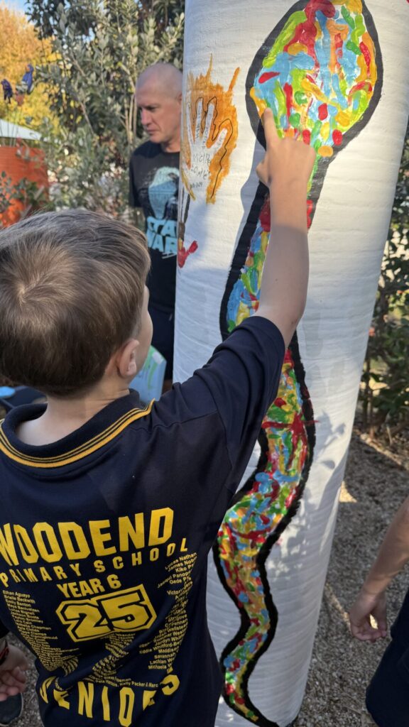 Earlier in the week, Rooms 15 and 16 hosted a whole-school assembly, sharing our new Acknowledgement of Country video and introducing a special community art project. Our Aboriginal learners, working alongside Dylan, have led the creation of this artwork. We are grateful to the families who came along to contribute to this project and take part in the nature trail.