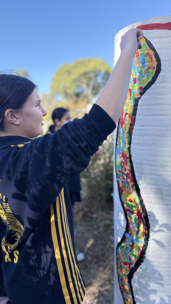 Classes explored the artwork Saltwater and the Coastline, which will feature on our new school water fountains. This piece tells the story of Saltwater people and their enduring connection to coastal waterways, further enriching our school’s understanding of the significance of Country.