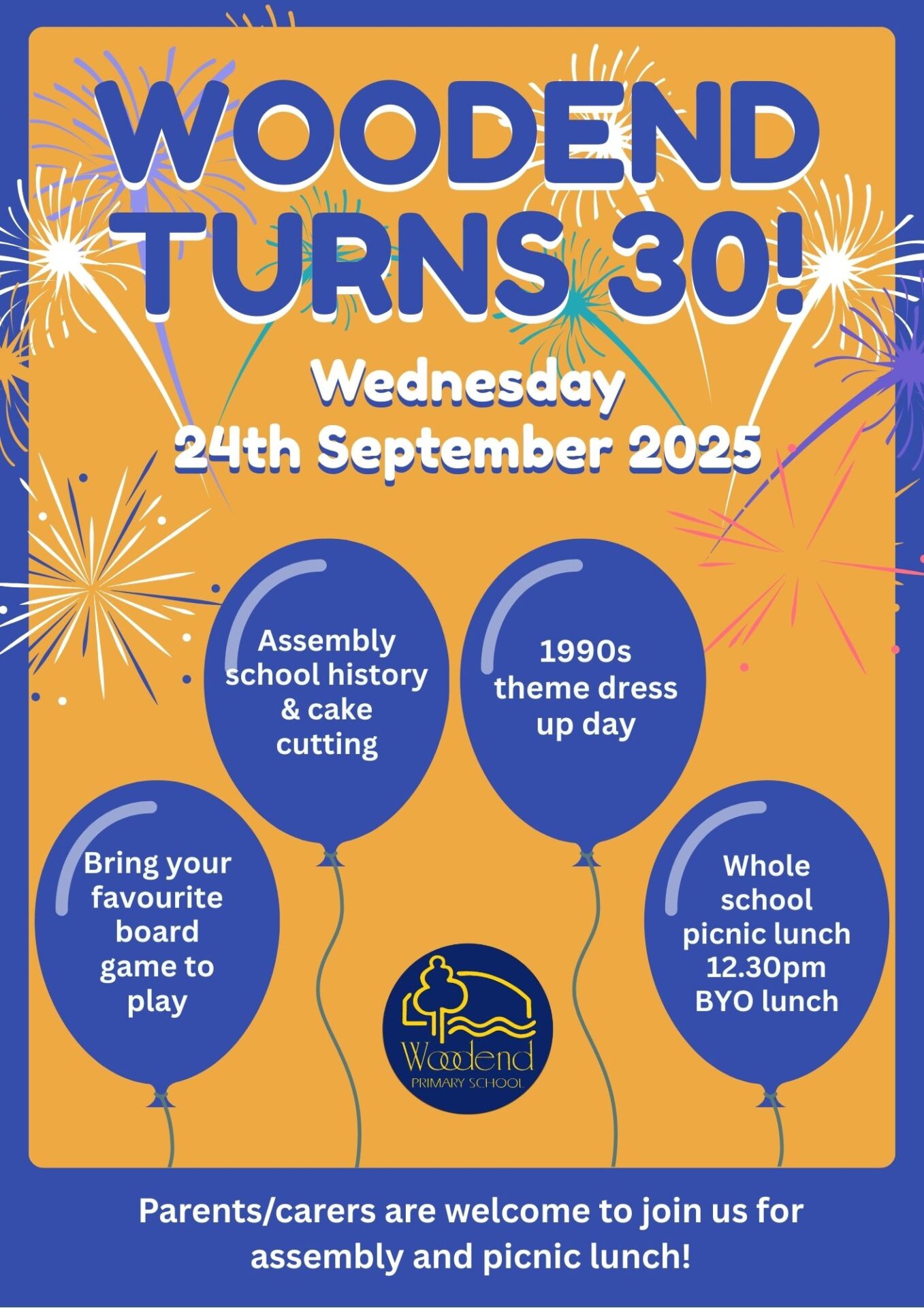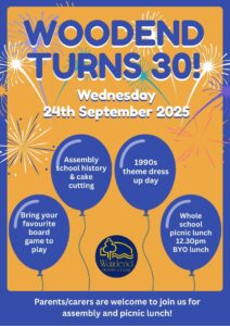 We are excited to celebrate a milestone Birthday for our school! Woodend Primary School has turned 30 years old and we would like to invite you to be part of the celebrations! We will hold Birthday festivities on: