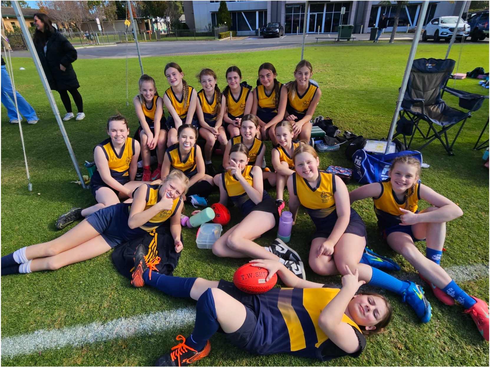 The Woodend girls displayed fantastic spirit and determination during their three AFL games yesterday at Westminster in Round 1 of the Statewide Schools Competition. They started on a high with a win against Westminster before narrowly falling short against Woodcroft College. In game 3 the girls came up against an experienced and talented All Saints team, the girls kept running, tackling and giving it their best for the entire game.